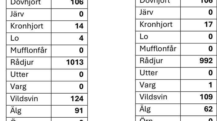 Statistiken visar hur viltolyckorna i Örebro län fördelar sig på det anmälningspliktiga viltet.