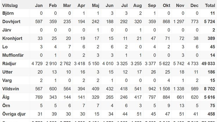 Statistik från Nationella Viltolycksrådet;
