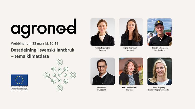 Välkommen till ett webbinarium där vi presenterar Agronod, vår nationella dataplattform för delning av lantbruksdata och demar klimatberäkningsverktyget Agrosfär. Tillsammans med gäster och samarbetspartners diskuterar vi frågor som: