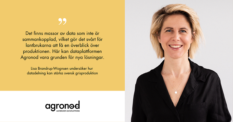 Lisa Brandrup-Wognsen, ansvarig för innovation och samverkan på Agronod, leder ett arbete för att undersöka hur datadelning kan förbättra svensk grisproduktion.