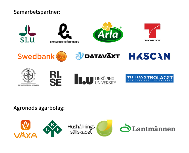 Projektet Nationell plattform för delning av jordbruksdata – steg 1 pågår till slutet av 2023 och sker i samverkan med att stort antal partner. Agronod är sammankallande kraft och driver projektet tillsammans med Swedbank, Dataväxt, Handelshögskolan i Stockholm, Hushållningssällskapet, T-kartor, HKScan, LRF, Linköpings universitet, Arla Foods, Växa, RISE, Lantmännen, Tillväxtbolaget för Sveriges Lantbrukare, Livsmedelsföretagen och SLU.