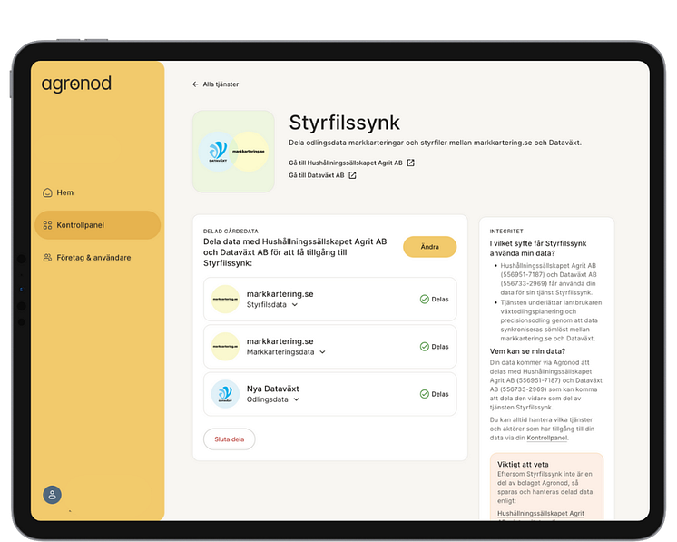 Via Agronod-plattformen kan lantbrukare nu enkelt synkronisera data mellan markkartering.se och Dataväxt.
