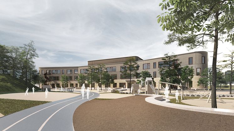 Nu är första spadtaget taget för en ny förskola för ca 160 barn i Tyresö. Bergfotens förskola ska hänsynsfullt passa in i landskapet genom att underordna sig skogen och terrängen. Hållbarhet är i fokus och byggnaden kommer att ha en stomme i korslimmat trä och en värmebehandlad träfasad.