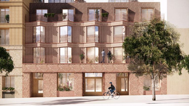 Sockelvåningen blir öppen, varierad och inbjudande med generösa glaspartier i hörnlokalerna. I sockelvåningen finns också unika bostads- och radhusentréer med indrag och plats för sittplatser och växtlighet där emellan.
