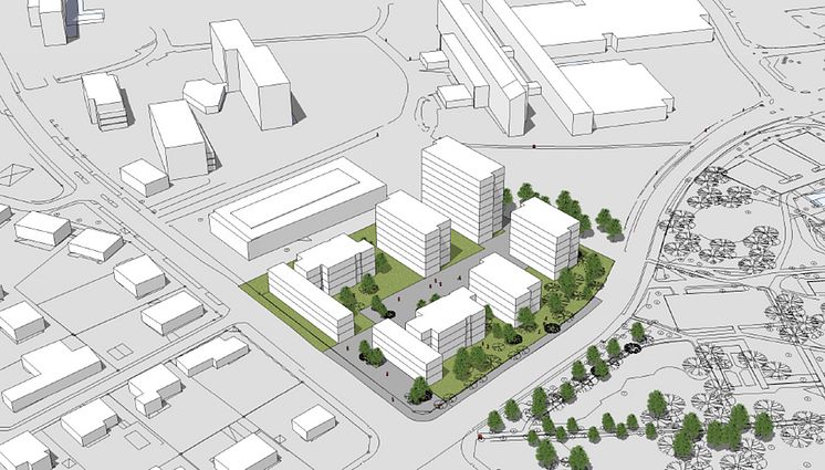 Skiss studentbostäder, Tornavägen/Tunavägen, Lund