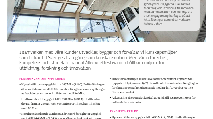 Akademiska Hus delårsrapport 1 januari – 30 september 2015
