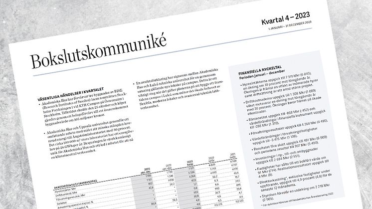 Bokslutskommunikén i sin helhet finns att läsa och ladda ner här: https://www.akademiskahus.se/om-oss/ekonomi/ekonomiska-rapporter/