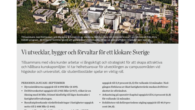 Akademiska Hus delårsrapport 1 januari – 30 september 2016