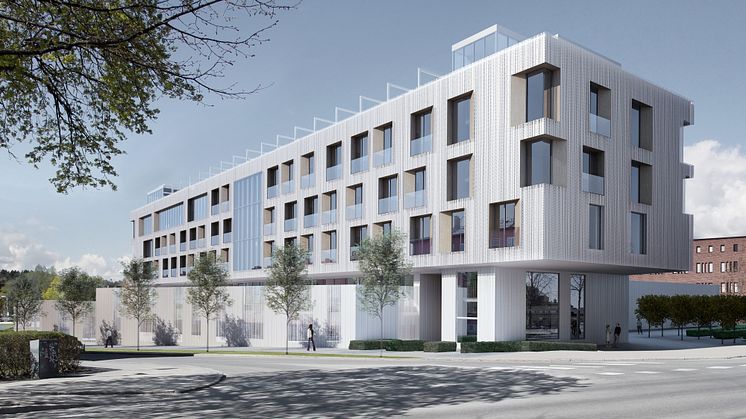 Byggandet av Skandionkliniken är ett partneringprojekt mellan Akademiska Hus och NCC, där företagen arbetar nära de sju landstingen som via Kommunalförbundet Avancerad Strålbehandling kommer att stå för verksamheten på Skandionkliniken.