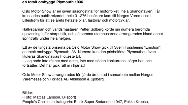 Oslo Motor Show arrangerades för fjärde året i rad i samarbete mellan Norges Varemesse och Förlags AB Albinsson & Sjöberg.