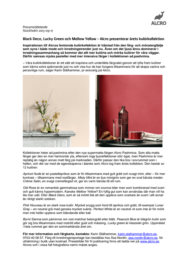 Alcro presenterar årets kulörkollektion