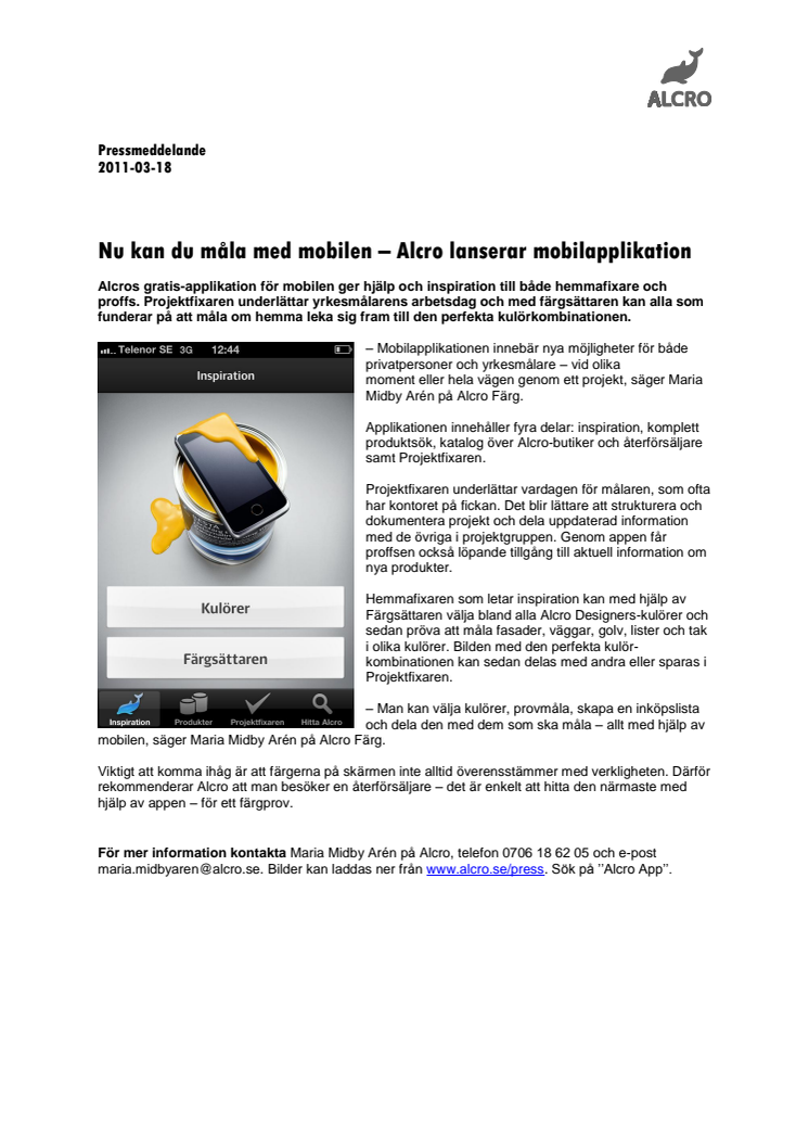 Nu kan du måla med mobilen - Alcro lanserar mobilapplikation