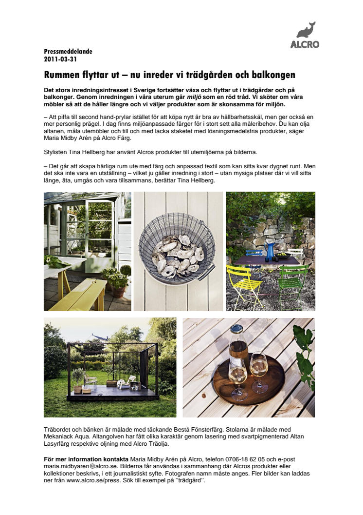 Det stora inredningsintresset i Sverige fortsätter växa och flyttar ut i trädgårdar och på balkonger. Genom inredningen i våra uterum går miljö som en röd tråd. Vi sköter om våra möbler så att de håller längre och vi väljer produkter som är skonsamma för miljön.