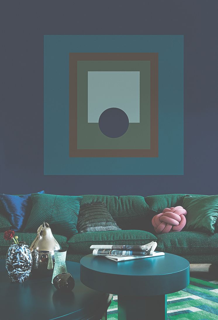 Väggmålning är en blandning av kulörerna Oktan, Chicken Coop, Brownie och Blåstång