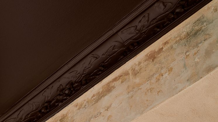 Den mjukt svarta kulören, Coffee in China, i taket är inspiration från ett mohairtyg från 1970-talet som Marie Olsson Nylander använt till familjens soffa.