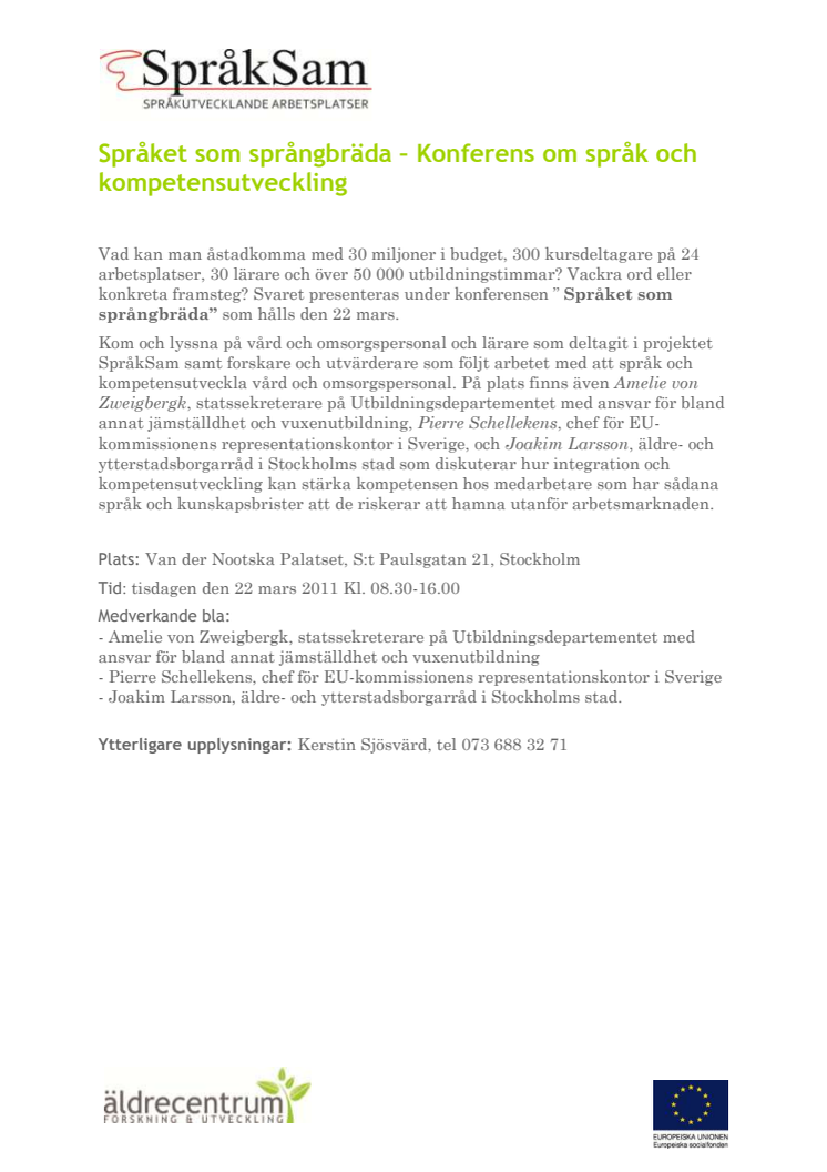 Vad kan man åstadkomma med 30 miljoner i budget, 300 kursdeltagare på 24 arbetsplatser, 30 lärare och över 50 000 utbildningstimmar? Vackra ord eller konkreta framsteg? Svaret presenteras under konferensen ” Språket som språngbräda” som hålls den 22 mars.