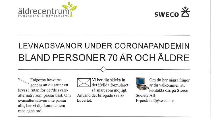 Enkäten skickas med post till 3 760 personer från 70 år och uppåt. Två påminnelser kommer att skickas ut innan sista svarsdatumet, som ligger i augusti. Analyser görs under hösten och projektet beräknas vara avslutat vod årsskiftet.