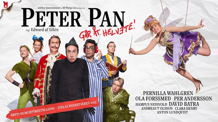 I januari 2023 slår Cirkus i Stockholm upp dörrarna för vårens största, galnaste och mest gastkramande skrattfest någonsin – Lifeline Entertainment och All Things Live presenterar stolt Peter Pan går åt helvete, i regi av succéregissören Edward af Sillén. I huvudrollerna ser vi en stjärnspäckad ensemble bestående av bland andra Pernilla Wahlgren, Per Andersson, Ola Forssmed, David Batra, Clara Henry och Hampus Nessvold. Tillsammans vänder de fullkomligt upp och ner på den klassiska sagan om Peter Pan, på sig själva och på hela Cirkus. Efter premiären den 19 januari åker föreställningen på en omfattande Sverigeturné. Biljetterna släpps idag 19 september kl 10.00.
