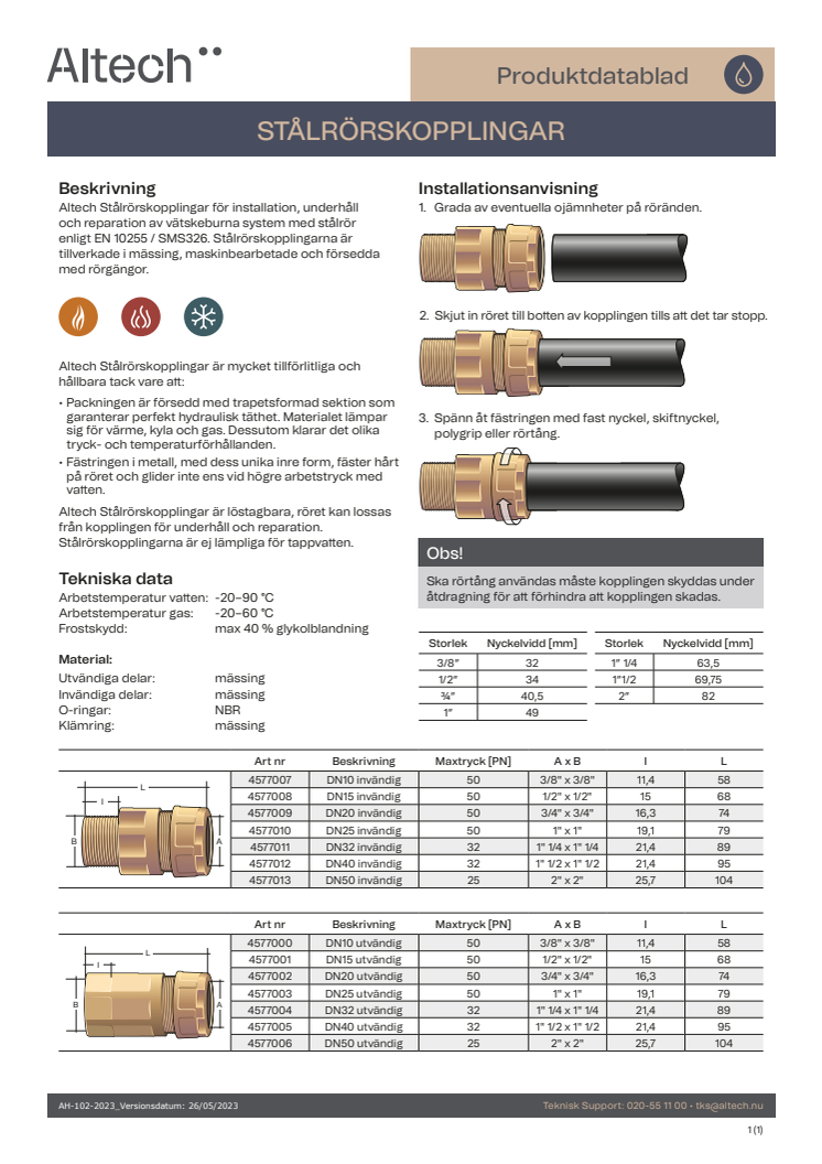 Altech, Sveriges ledande varumärken för vs-installationer, lanserar stålrörskopplingar för installation, underhåll och reparation av vätskeburna system med stålrör.