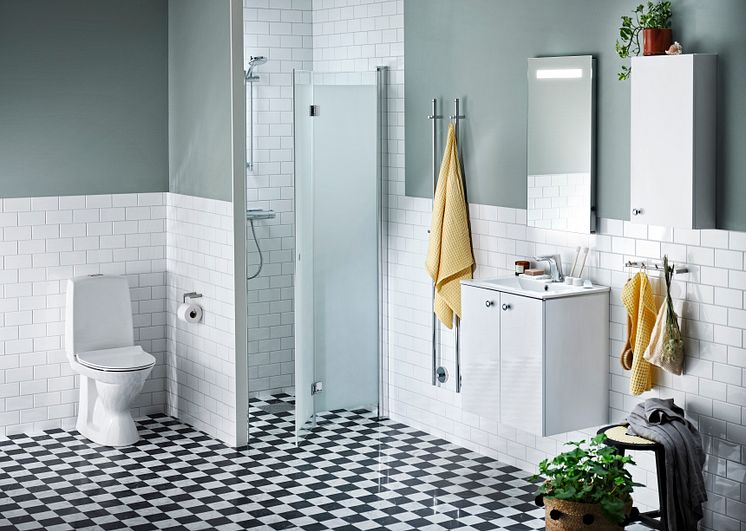 Isella med luckor tillsammans med Isella väggskåp och Lusso vikdörr i frostat glas.