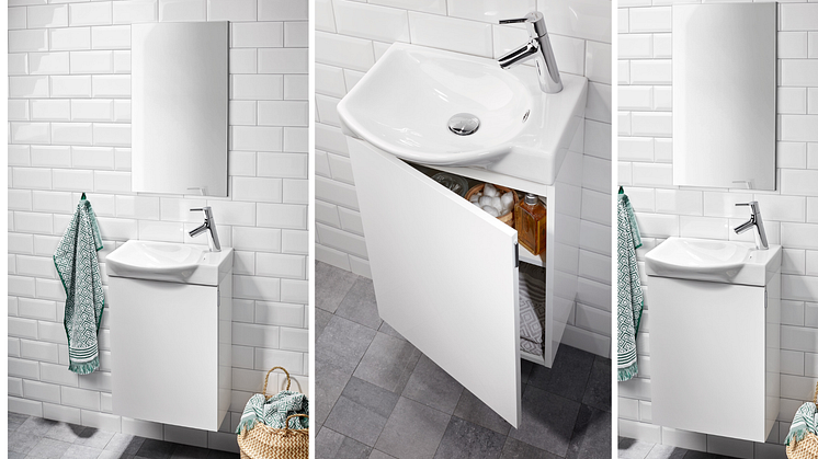 I vårt smarta Aqua-sortiment finns även underskåp med antingen en eller två lådor, eller med dörrar, samt spegelskåp, belysning och högskåp – samtliga möbler med samma 100 %-iga vattentålighet. Det finns serier i högblank vit och en i matt vit.