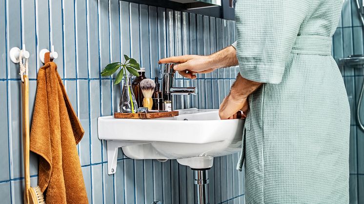 Den väggmonterade lösningen bidrar till att ge badrummet en luftig känsla.