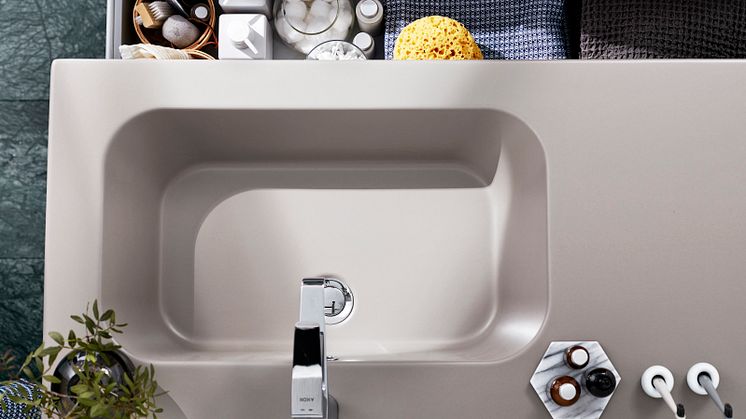 Möblerna i Alternas All Day Color-serie matchas fint av tvättställ i samma färg för en sober och enhetlig stil. I badrumsserien ingår kommod med mjukstängande lådor och tvättställ i tunt porslin samt högskåp med vändbara dörrar och glashyllor. Kommoden finns i fyra bredder, där den bredaste kan väljas med ho till vänster, centrerad eller till höger. All Day Color finns i två färgskalor – sobert svart eller klassiskt beige.