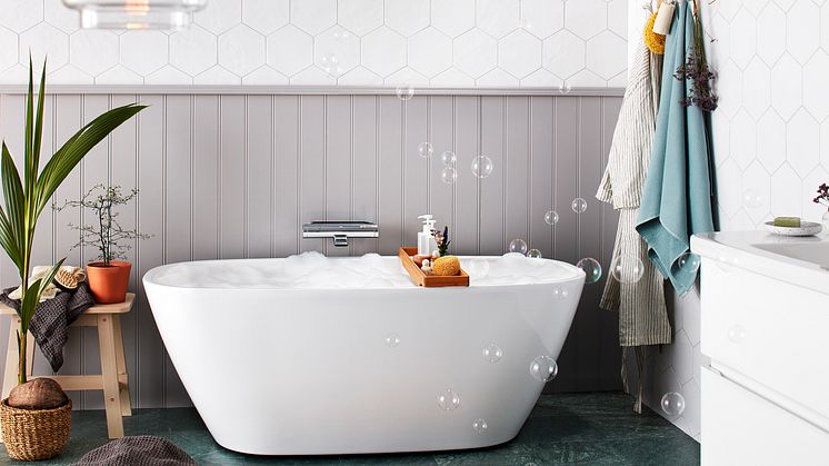 Vår mest exklusiva duschvägg, en vertikal handdukstork och en LED-spegel för dagsljus