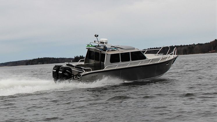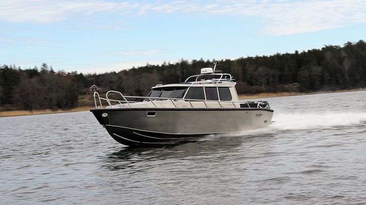 - Jag var egentligen helt säker på att jag ville ha en Alukin SCR 850 som jag tycker är ett fantastiskt bra koncept för svenska förhållanden med bra hytt, övernattningsmöjlighet och uteplats för de få varma dagarna. När jag besökte Alukins båtproduktion och vandrande genom fabriken med skrov i olika storlekar frågade jag Peter spontant om det skulle gå att bygga en lite större båt. ”Inga problem, det fixar vi”, svarade Peter. ”Skrovet har vi redan byggt för Finnhamns Värdshus och resten ordnar vi” berättar Mathias Söderström.