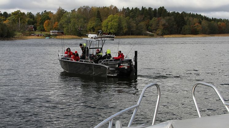 Efter en höstvecka med ordentliga vindstyrkor var båtbyggarteamet välrustade med varma kläder, flytoveraller och vissa med egen fiskeutrustning. Den som var bäst rustad var sportfiskeguiden Johan Broman, som packat all fiskeutrustning för en lyckad fiskedag i sin aluminiumbåt, en Alukin Pro Fishing 750. Ett välkänt faktum är att rejäl utrustning i kombination med hög kunskapsnivå ökar alla chanser till lyckat sportfiske, så samtliga i teamet var laddade inför dagens aktiviteter.