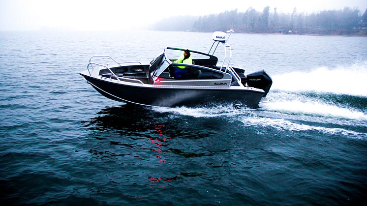 Nya ALUKIN DP 650 presenteras på mässan i Göteborg med en Mercury V6 200hk, Simrad GO 12” GPS och 3G radar. I båtens standardutrustning ingår trimplan, vindrutetorkare, komfortstolar med justerbar rygg och Grammers dämpande stativ samt dynor till aktersoffan.