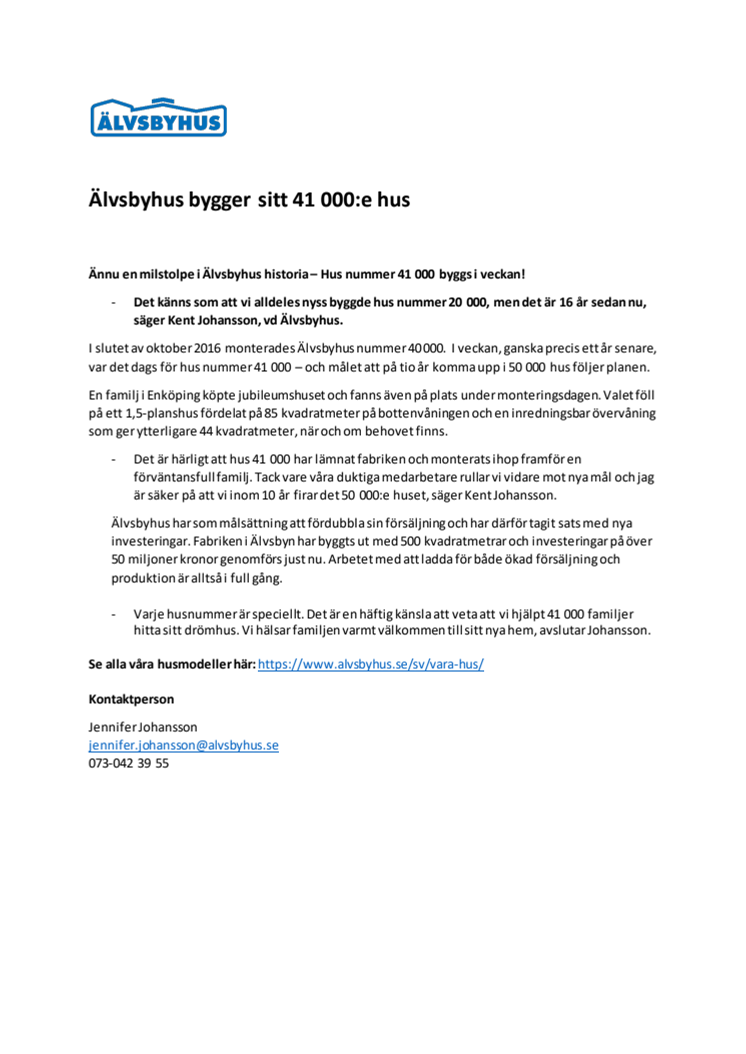 Älvsbyhus bygger sitt 41 000:e hus