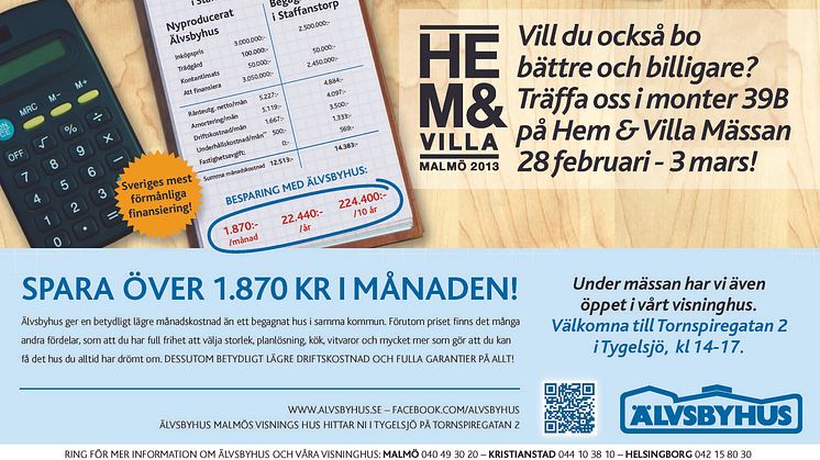 Förutom mässan i Malmö kommer Älvsbyhus även att vara utställare på Hem- och Villamässorna i Göteborg och Stockholm i oktober.