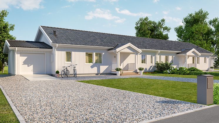 Svensk Fastighetsförmedling presenterar i samarbete med Älvsbyhus 14 hus i parhusformat. Vid populära Sjölyckan i Mariestad är det i skrivande stund endast ett fåtal bostäder kvar till salu. Många har nappat på möjligheten att få en egen lättskött trädgård, ett eget garage och en trevlig uteplats samtidigt som allt är nytt och fräscht.
