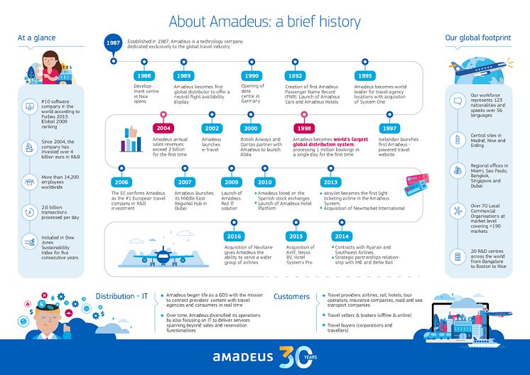 Under 2017 fyller Amadeus 30 år. Vi har passerat flera milstolpar och denna infografik belyser några av de viktigaste händelserna under vår resa.
