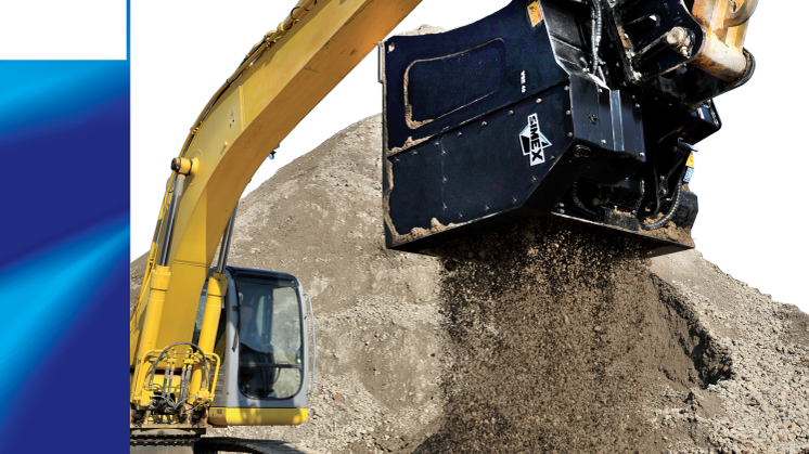Simex nya siktskopa är en helt ny typ av skopa som ger möjligheten att justera slutfraktionen utan stillestånd och arbetsinsats. Med en hydraulisk justering av valsarna kan föraren av grävmaskinen justera fraktionen direkt från hytten från 15-45mm.