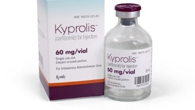 Kyprolis is also indicated under U.S. Food and Drug Administration (FDA) accelerated approval as a single agent for the treatment of patients with multiple myeloma who have received at least two prior therapies including bortezomib and an immunomodulatory agent and have demonstrated disease progression on or within 60 days of completion of the last therapy. Approval is based on response rate. Clinical benefit, such as improvement in survival or symptoms, has not been verified.