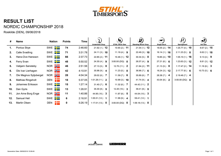 Resultatlista för Nordiska Mästerkapen, individuella tävlingen