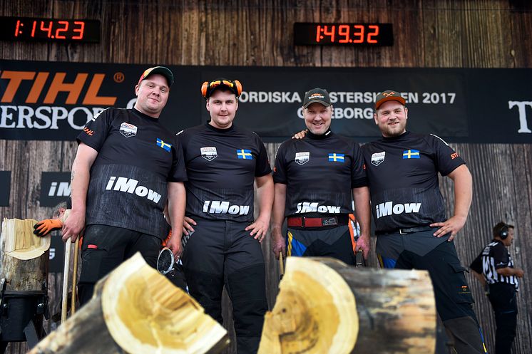 Sverige tog hem storslam i Nordiska Mästerskapen på hemmaplan i Göteborg 2017, med segrar både individuellt och i lag. Från vänster: Pontus Skye, Johannes Eriksson, Hans-Ove Hansson och Calle Svadling.
