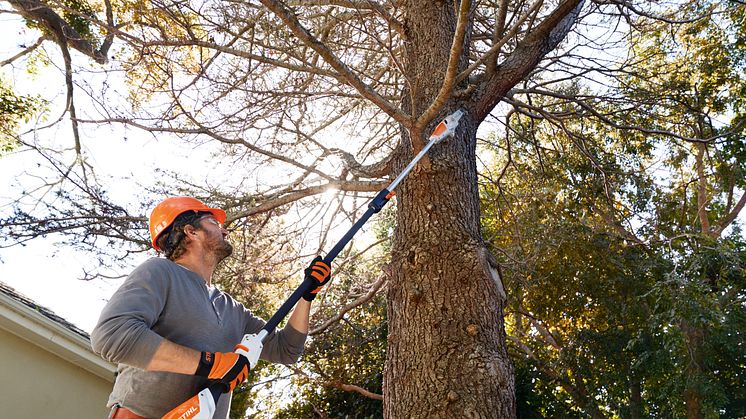 Nya batteridrivna stamkvistaren STIHL HTA 50 ger exakta snitt dit inte armarna når och är perfekt för den som utför trädvård på prydnads- och fruktträd. Tack vare en total längd på 280 centimeter kan arbetet utföras enkelt och tryggt från marken, utan att stegen behöver plockas fram.