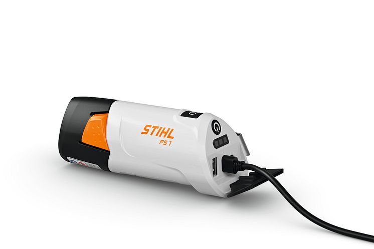 - STIHL PS 1: Laddare för AS 2 batterier och powerbank med LED-ljus.