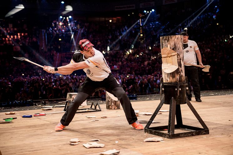 Det blir underhållning och tävlingar på högsta nivå när VM i Timbersports avgörs till helgen. Närmare 100 atleter från 20-talet nationer gör upp om mästerskapet i lag och individuellt. I lagtävlingen är Australien förhandsfavorit men utmanas av både Nya Zeeland, USA, Kanada och Tyskland. Australien, som även går under smeknamnet ”Chopperros” har lagt beslag på lagsegern tre år i rad och satte i senaste VM i Stuttgart ett nytt och imponerande världsrekord på 46,45 sekunder. Laget är nu ute efter fjärde raka vinsten och har en stark frontfigur i Brad de Losa som för övrigt plockade hem Champions Trophy* i våras i Hamburg. Samma tävlingshelg där Ferry Svan blev juniorvärldsmästare.