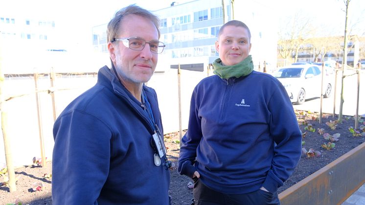 - Träden kan stå och växa sig stora i lådorna tills vi behöver dem för andra förtätningsprojekt där vi vill plantera stora träd, säger Anna Visala, projektledare från Ängelholmshem. Det är som om vi har skaffat oss en egen liten plantskola.