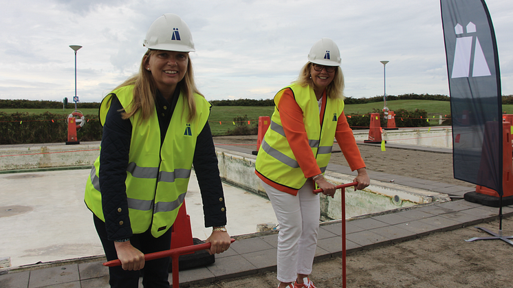 På plats under torsdagen för att stänga ventilerna till bassängerna, och på så vis symboliskt starta arbetet, fanns Åsa Herbst, styrelseordförande på Ängelholmslokaler tillsammans med Christina Hanstål (M) ordförande i nämnden för kultur, idrott och fritid samt Anders Rundström från byggentreprenören MVB. För att knyta an till platsen bjöds det på vresros-saft, en buske som sedan länge blommar kring Vejbybadet.