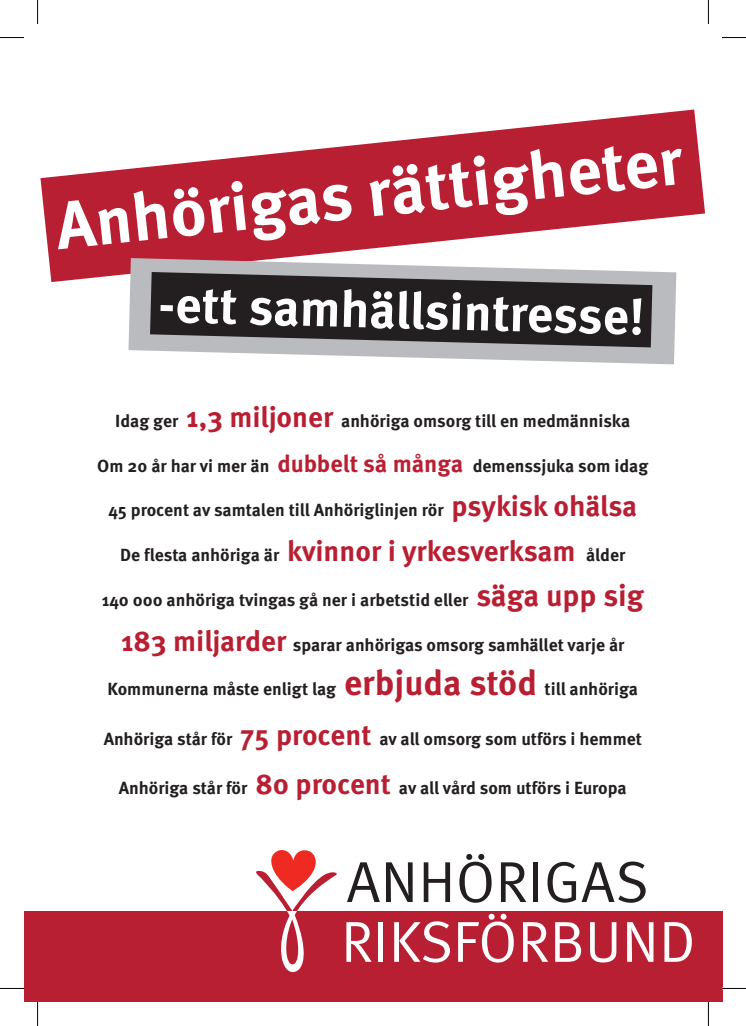 Idag den 15 maj öppnar årets Anhörigriksdag i Varberg. Anhörigriksdagen är Sveriges största anhörigkonferens. I tjugo år har Anhörigas Riksförbund arrangerat dagarna för att lyfta fram Sveriges 1,3 miljoner anhöriga. I år träffas vi under parollen Anhörig - med rätt till eget liv.