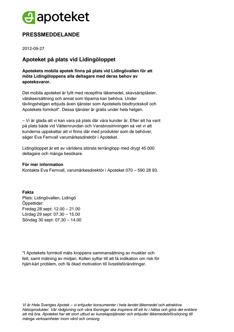 Apotekets mobila apotek finns på plats vid Lidingövallen för att möta Lidingöloppens alla deltagare med deras behov av apoteksvaror.