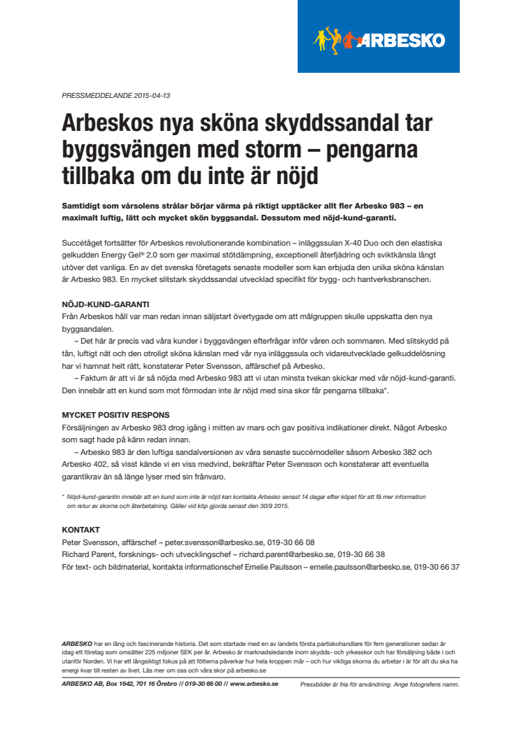 Samtidigt som vårsolens strålar börjar värma på riktigt upptäcker allt fler Arbesko 983 – en maximalt luftig, lätt och mycket skön byggsandal. Dessutom med nöjd-kund-garanti.