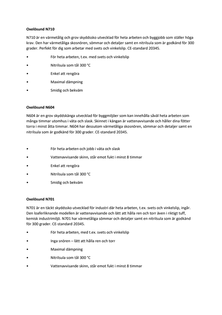 Fakta om varje sko i produktfamiljen Oxelösund. Skyddsskor för heta arbeten och krävande miljöer inom bygg och industri.