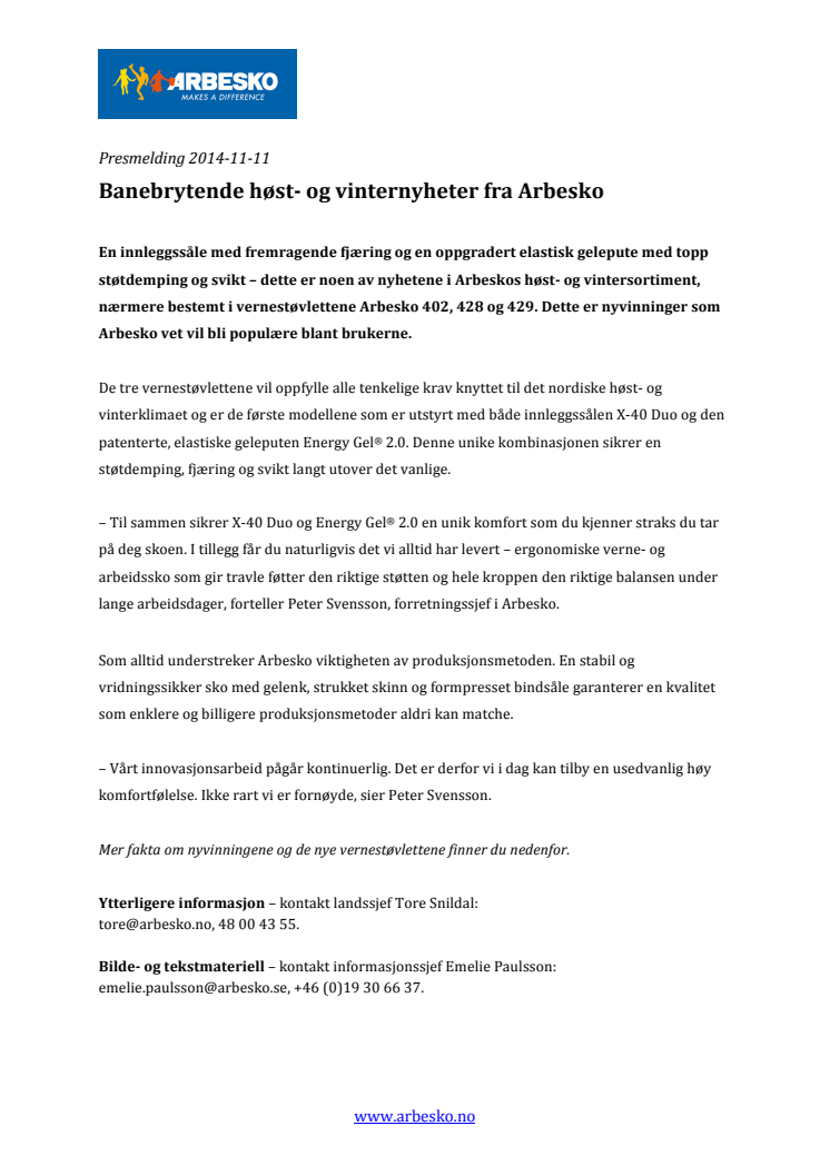 NO: Banebrytende høst- og vinternyheter fra Arbesko