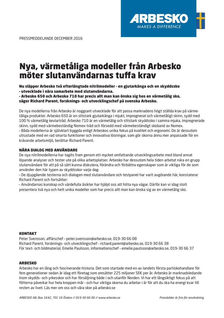 Nya, värmetåliga modeller från Arbesko möter slutanvändarnas tuffa krav